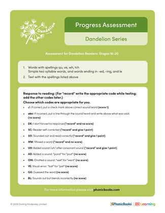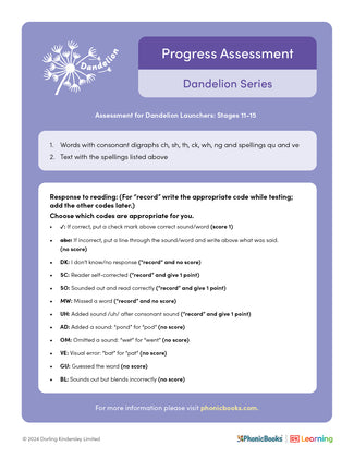 The Dandelion progress assessments can be used alongside the books in our Dandelion Launchers and Dandelion Readers series to evaluate progress over time.