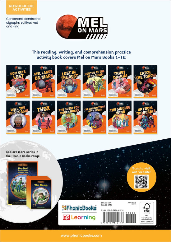 This activity book includes activities for for word building, blending, spelling, and comprehension linked to the Mel on Mars series.