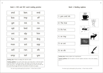 A twelve book set covering CVC and CVCC words and progressing to adjacent consonants, consonant digraphs, and suffixes.